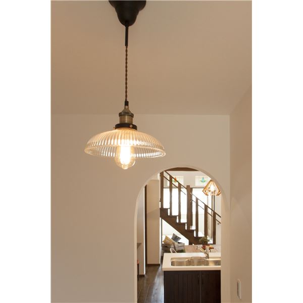 波打つデザインのガラスシェードがどこか昭和を思わせるレトロな雰囲気のペンダントライトです。愛嬌のあるスタイルをブラックのカバーが引き締めているので、和モダンやフレンチシャビ―感のあるスタイルによく合います。